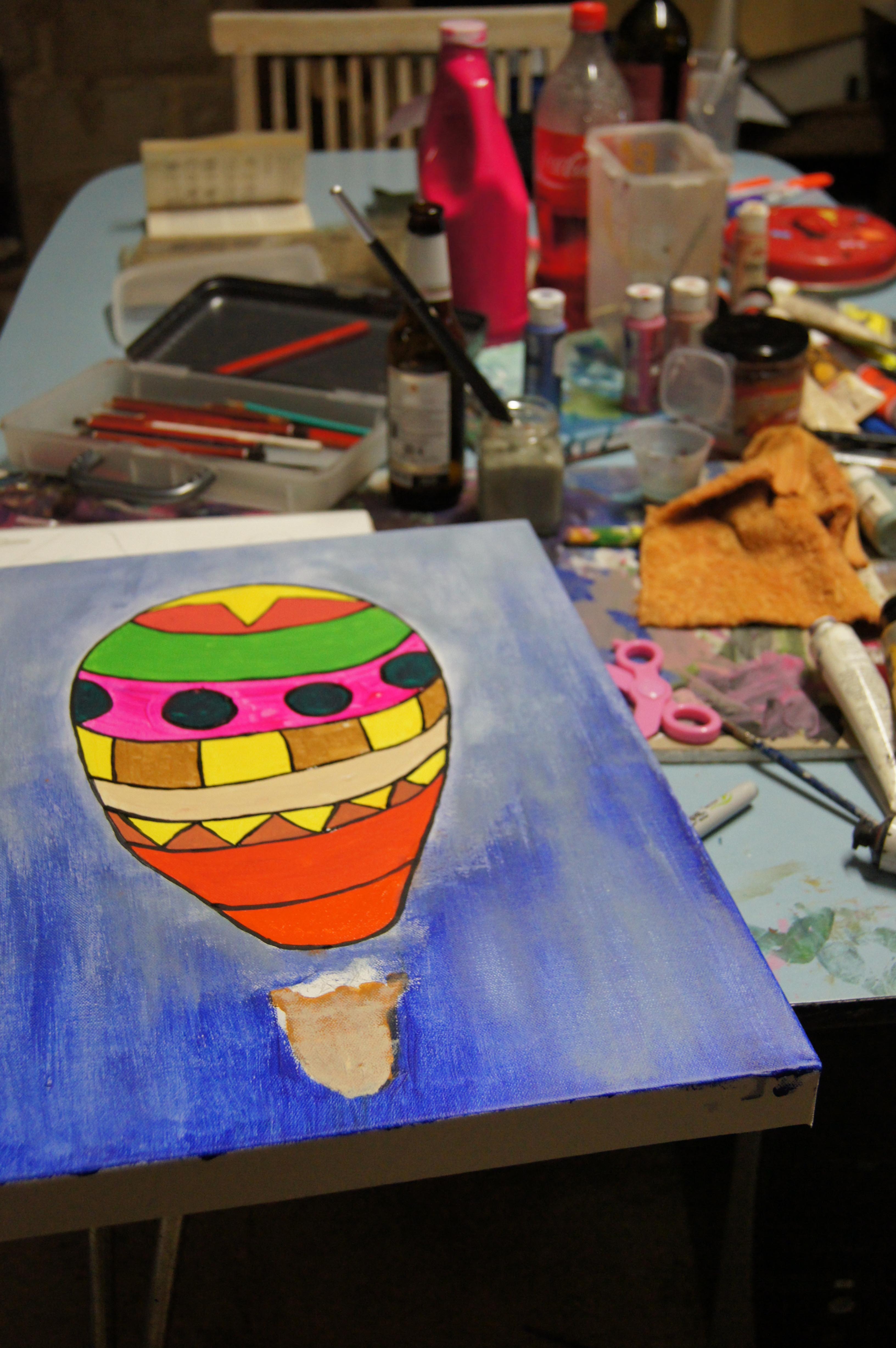 This particular piece is differently made than most of the artwork i do – in this piece i started with a very faint pencil outline, then painted the balloon with some basic colour stripes. Only then did i start using a pen and add detail.